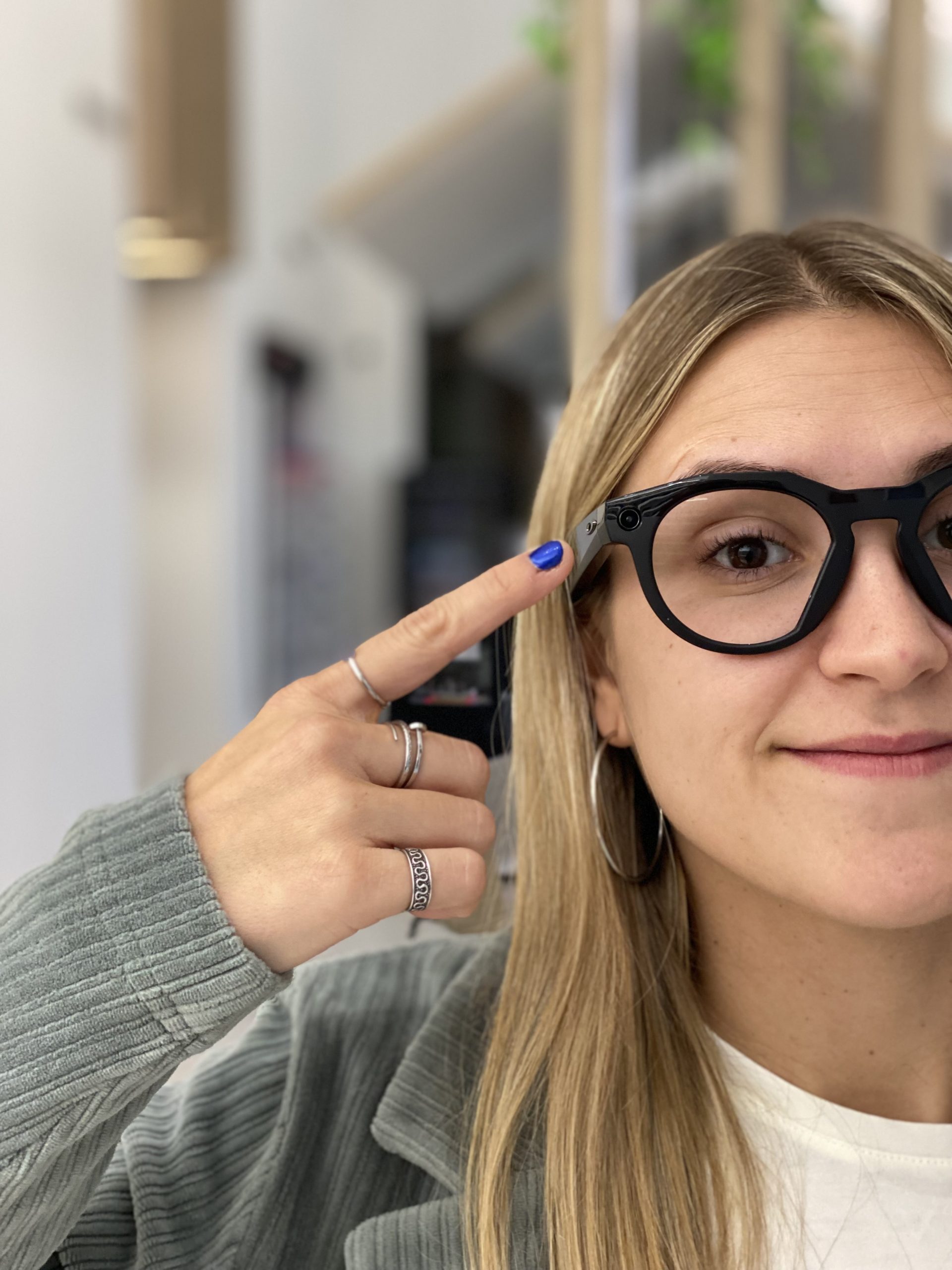 Podrás hacer fotos gracias a las dos cámaras que posee a los lados. Cada vez que le pidas a la gafas que realice una foto, se encenderá en la cámara derecha una luz para avisar de que se va a realizar una foto.